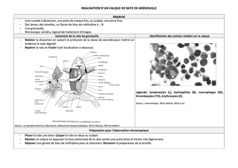 Il s'agit d'une adaptation de la réalisation de calque de ganglion lymphatique de souris. Le principe est de réaliser un calque de la rate de la grenouille qu'il est possible de disséquer.