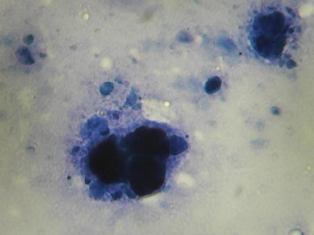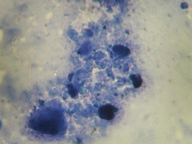 - pas de gras donc nettement moins de globules lipidiques sur la préparation.