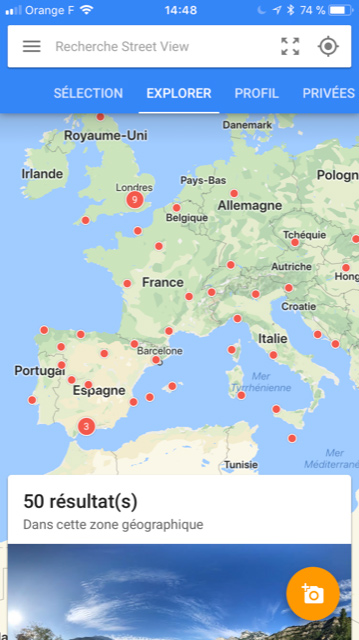 L'acquisition manuelle de photosphère avec l'application Street View est assez longue et fastidieuse mais est réalisable avec presque tous les smartphones. Des élèves sur le terrain peuvent donc en réaliser avec leur propre matériel. En plus des fonctionnalités classiques d'exploration, de recherche et de visualisation des photosphères de Google, l'application a une fonctionnalité de prise de vue.